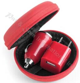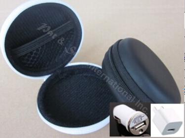 Zippered hard circular shaped EVA case, Includes 1000 mAh car charger and 5V output wall adapter with 1 USB Port(2.1A).EVA(Case) , ABS.1C imprint logo on case one position.30days