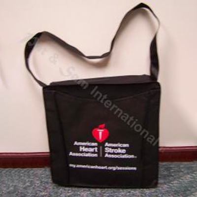 a non-woven messenger bag with silk imprint logo. non-woven. silk imprint logo. 10 days.