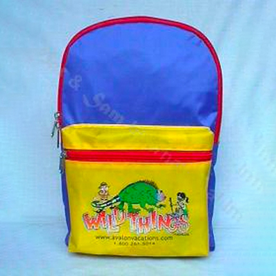Small backpack for children with additional zippered outside compartment. 70D Nylon. Imprint Logo