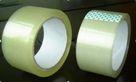 Branded Roll of packing tape. *Packing:6 rolls /Poly bag, 24 rolls/CTN. PET(0.05mm)