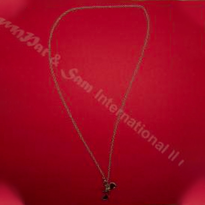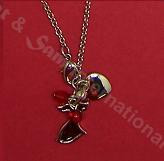 Silver necklace with a red dress shaped, a silver heart,a pearl and two gem stone. Metal/Silver