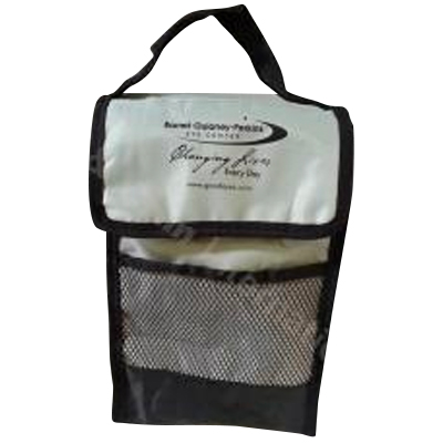 *Insulated Lunch Bag, with a front mesh pocket, use velcro closure. *Packing:1pc/OPP bag. 420D Polyester w/PVC+ 3mm PE sponge + 0.15mm Black PET Lining. 1-C Silkscreen imprint on one position. 35 days