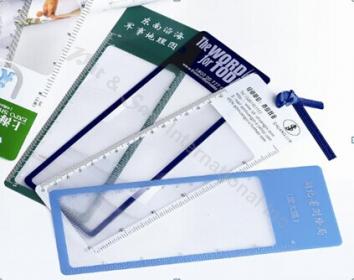 *Magnifying Bookmark with tassel, 6” ruler with standard and metric units, 3 X power magnifier; *Packing:25pc/opp bag,100pcs/inner box,1000pcs/CTN.PVC