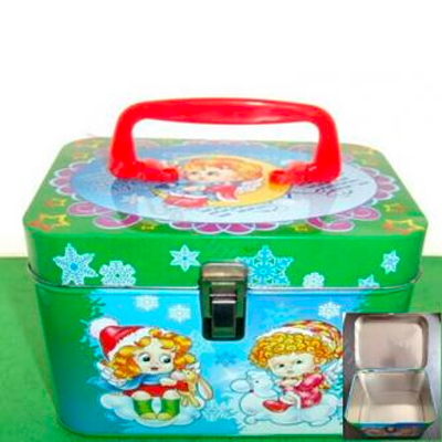 Metal tool box , with handle. Use lock to open and close. *Packing:1pc/opp bag, 50pcs/CTN. 1C imprint Metallic Silver logo on one position. 0.32mm Tin. 30 days