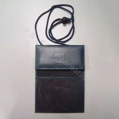 Neck wallet excellent for traveling. Keeps documents and currency secure. Non-woven polyester body with leather grain PVC flap. Leather Pattern PVC. Embroidery Logo. 15days