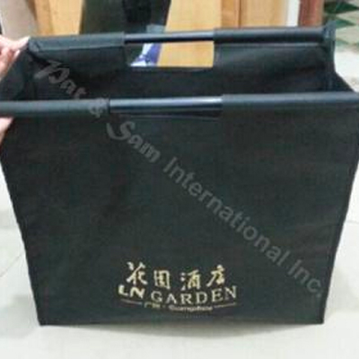 *Non-woven Tote Bag, PVC pipe in top fold(2pcs), Die-Cut handle. *Packing:50pcs/Poly bag. 200pcs/CTN. 90gsm PP non-woven. 1C imprint logo on both sides. 30 days