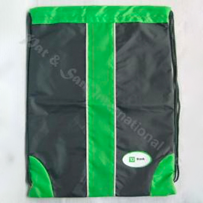 Polyester drawstring backpack. with 2-C Silkscreen imprint. Polyester coating PU. 30 days