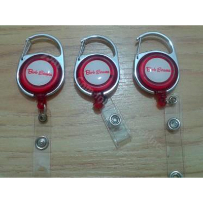 *Carabineer Retractable Badge Holder. *Nylon rope, length:26″, sustain:12g. *Packing:1pc/opp bag,100pcs/big bag,1000pcs/CTN. ABS+Zinc Alloy. 1-C Epoxy dome logo on one side. 25 days.