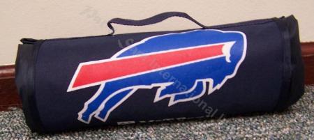 Bills Fleece Blanket. *Rolls up with Velcro closure, front slash pocket (pocket size about 10.6″x8.6″) ,top grab handle(size about 14″x0.78″). *Backing in black 210D polyester.*Packing:1pc/polybag,20pcs/CTN. 200g fleece brushed + 210D polyester