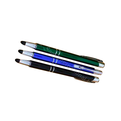 Stylus Aluminum Ballpen ,Twist action mechanism with black ballpoint ink cartridge. *Packing: 1pc/black velvet pouch, 50pcs/inner box, 1000pcs/CTN.Aluminum.1C imprint logo on one position.30days