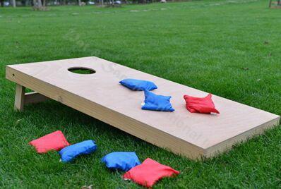 *Teak and Holly Corn Hole Set , 6?? holes with 2 legs. *Includes 2pcs custom hole boards and 8 pcs bean bags ?C 4 of each color (navy and pink) . *Packing: 2pc/set, each set pack to canvas carrying tote / CTN. Pine Wood / Plywood